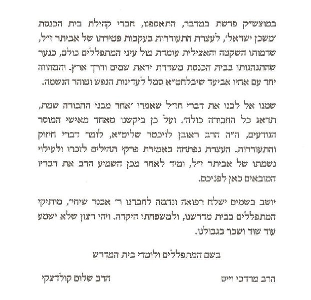 לימוד בערב הושענא רבא בבית כנסת "בית-אל" ברמות.